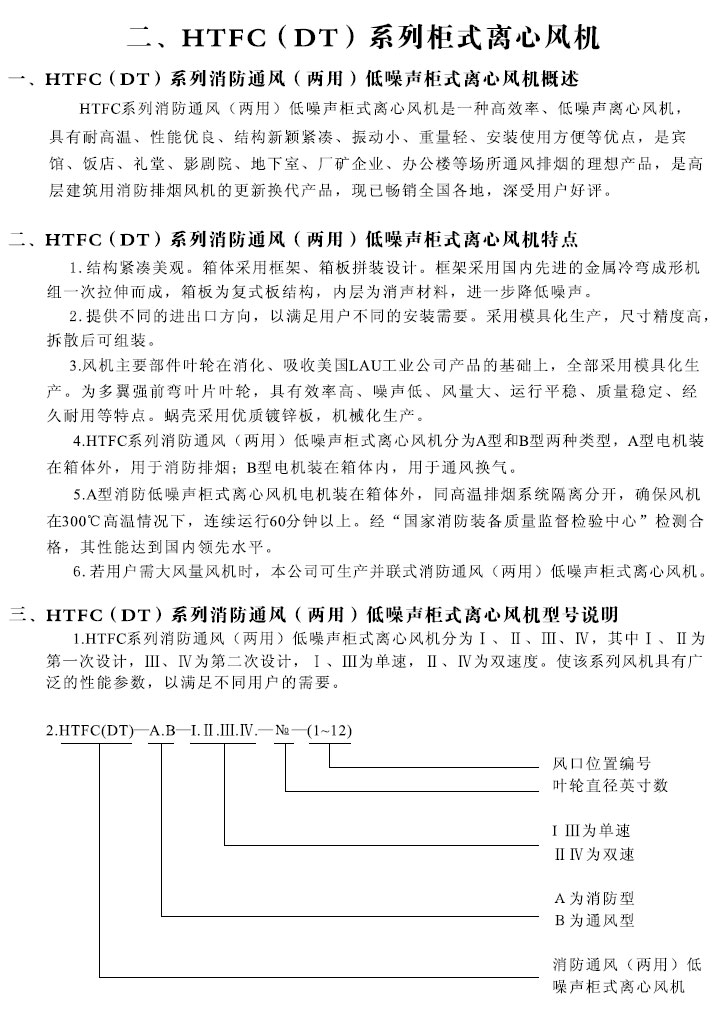 HTFC(DT)-I、II、III、IV系列消防通風(fēng)(兩用)柜式離心風(fēng)機