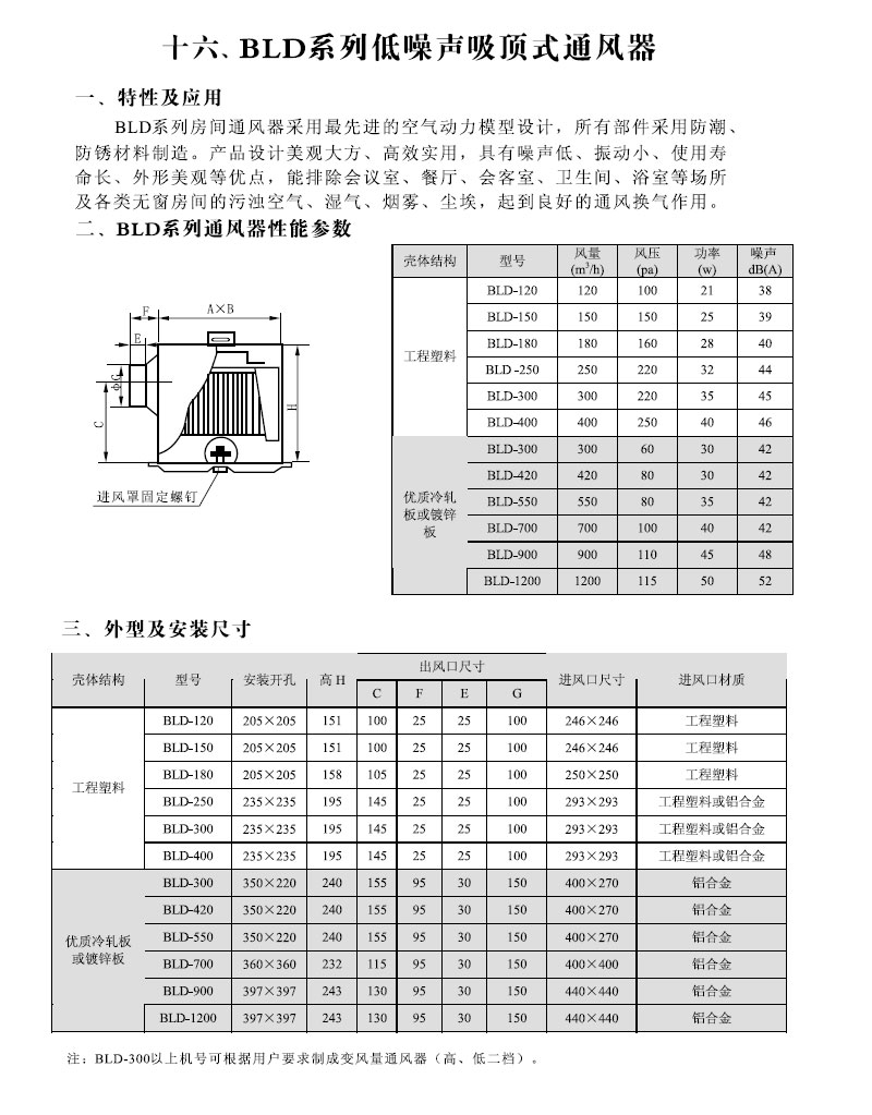 BLD系列低噪聲吸頂式通風(fēng)器